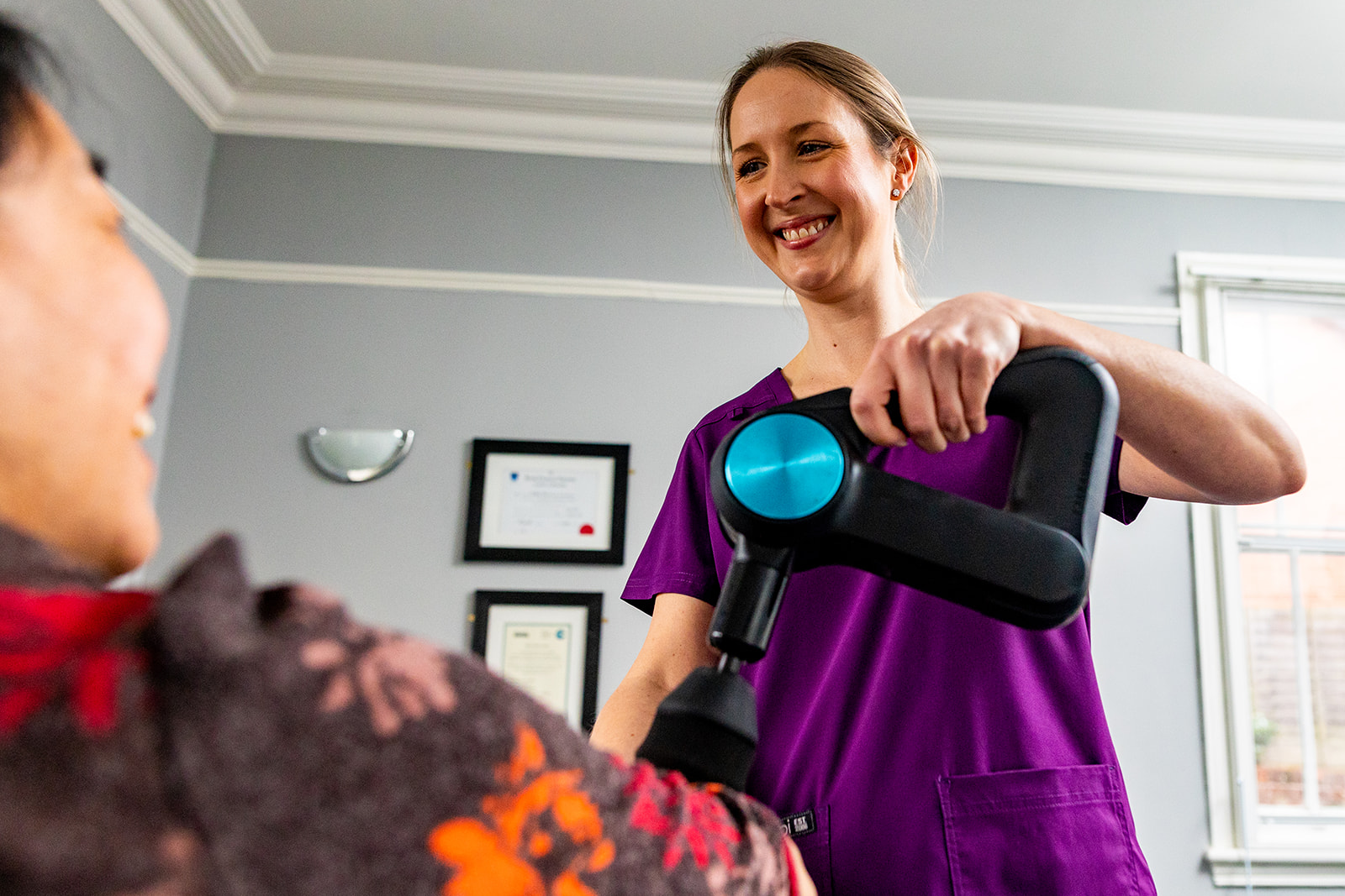 Sarah is a firm believer in patient education and preventative measures to enable patients to benefit long term from Chiropractic care. She regularly attends further education courses on an international scale to expand her knowledge in order to provide the highest standards in patient care. Sarah has trained to provide dry needling and Instrument Assisted Soft Tissue Mobilisation (IASTM) in her treatment. She has enjoyed the opportunity to share her Chiropractic knowledge offering talks to medical students at Birmingham University, and being part of the ‘Straighten-Up UK’ scheme in local schools.